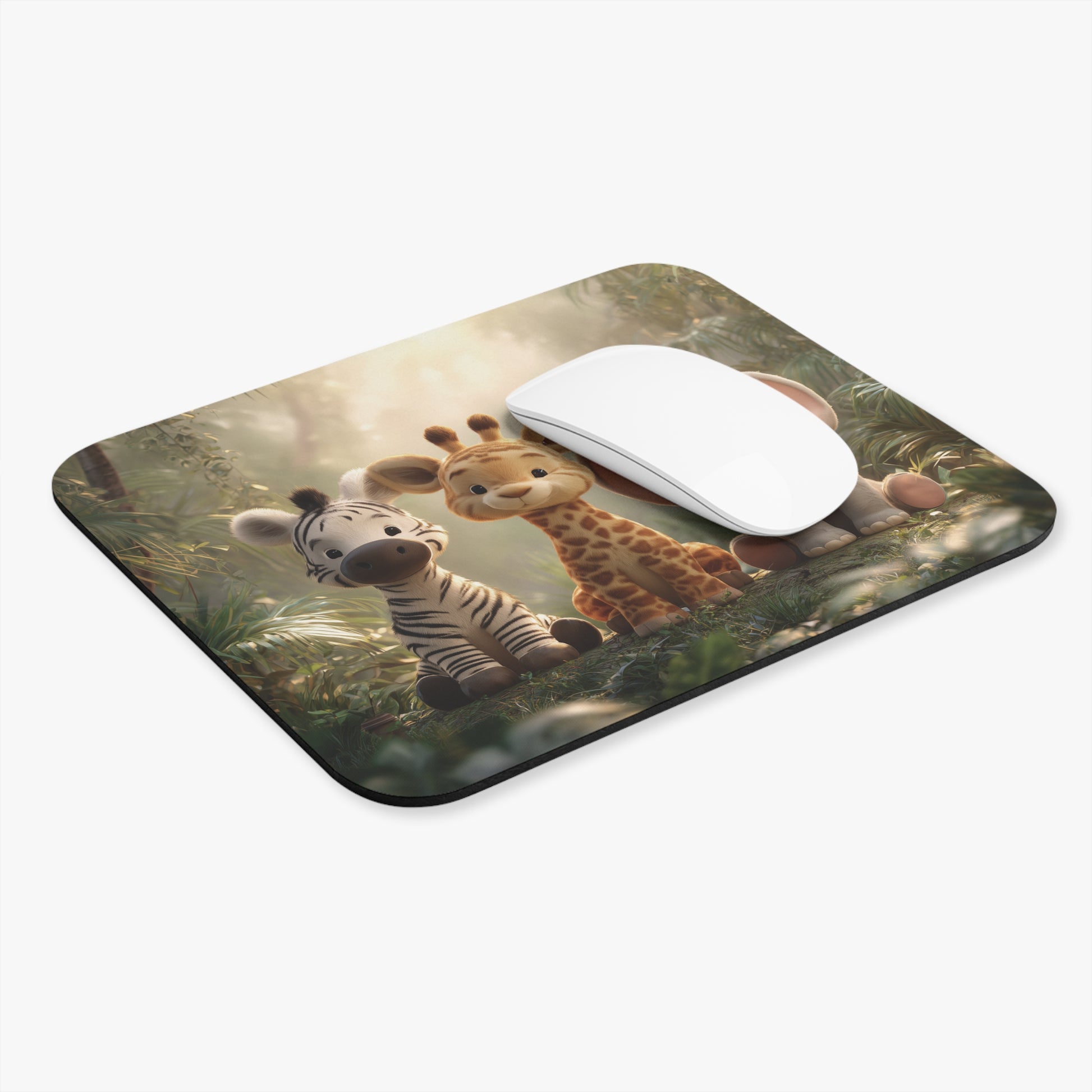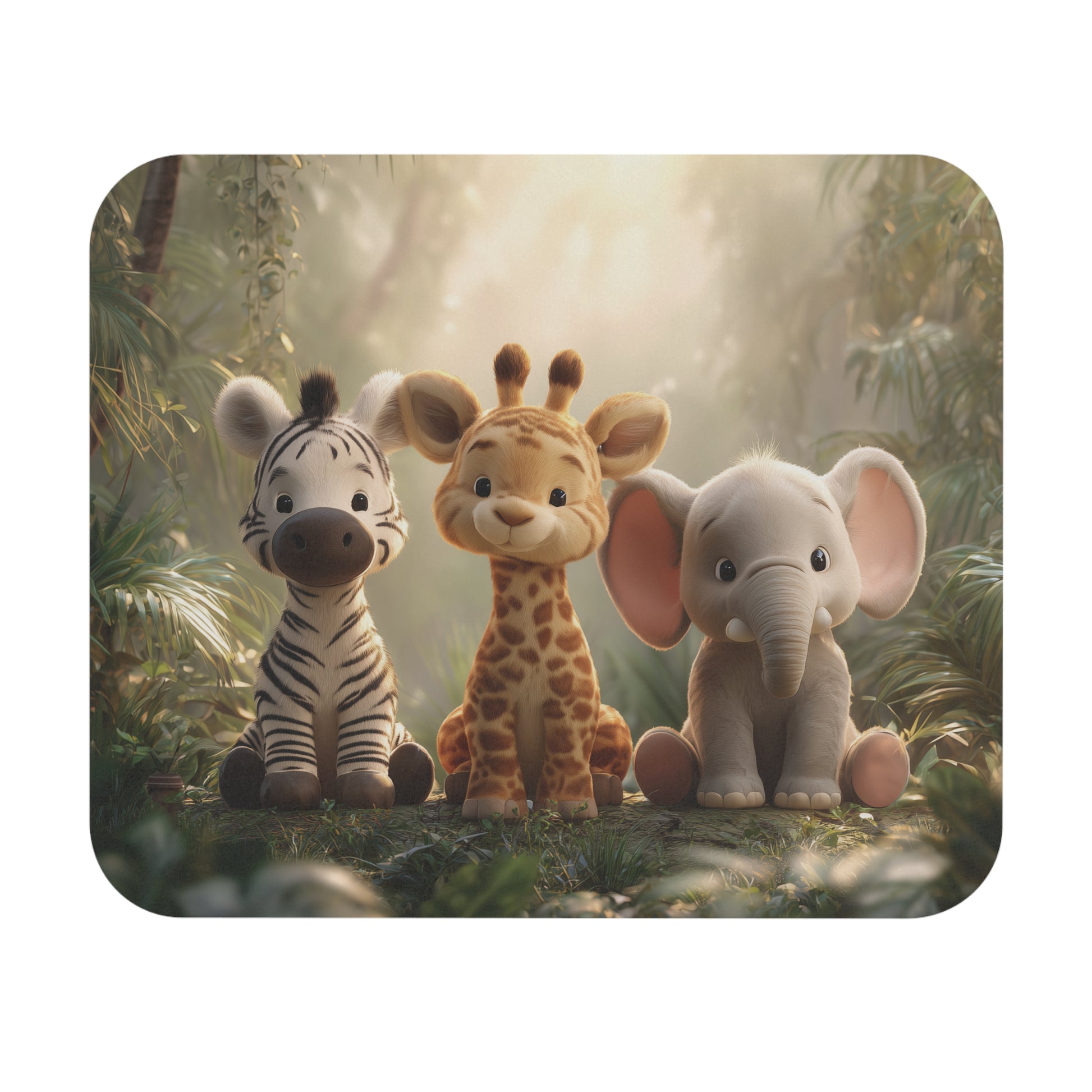 Brighten up your workspace with this charming Mouse Pad, featuring an adorable design of a zebra, giraffe, and elephant in a serene jungle setting. This mouse pad adds a touch of whimsy to your desk, creating a joyful atmosphere that inspires creativity and productivity. Perfect for students, professionals, or anyone looking to add a playful element to their workspace. Ideal for birthdays, holidays, or as a thoughtful gift for animal lovers, this mouse pad is both practical and delightful. Its vibrant imagery captures attention while providing a smooth surface for effortless mouse gliding, making it a must-have accessory for a fun and functional workspace.