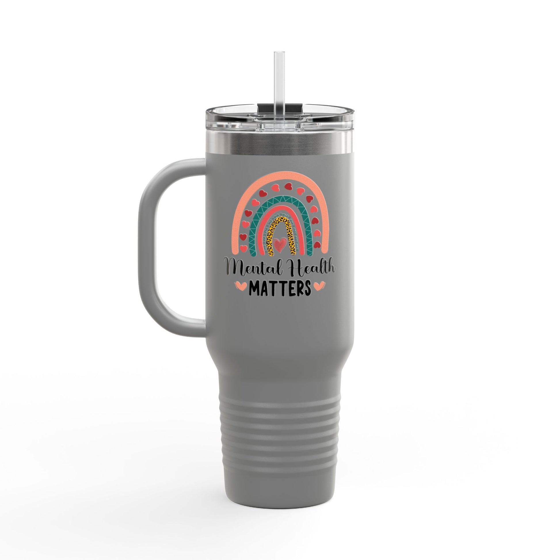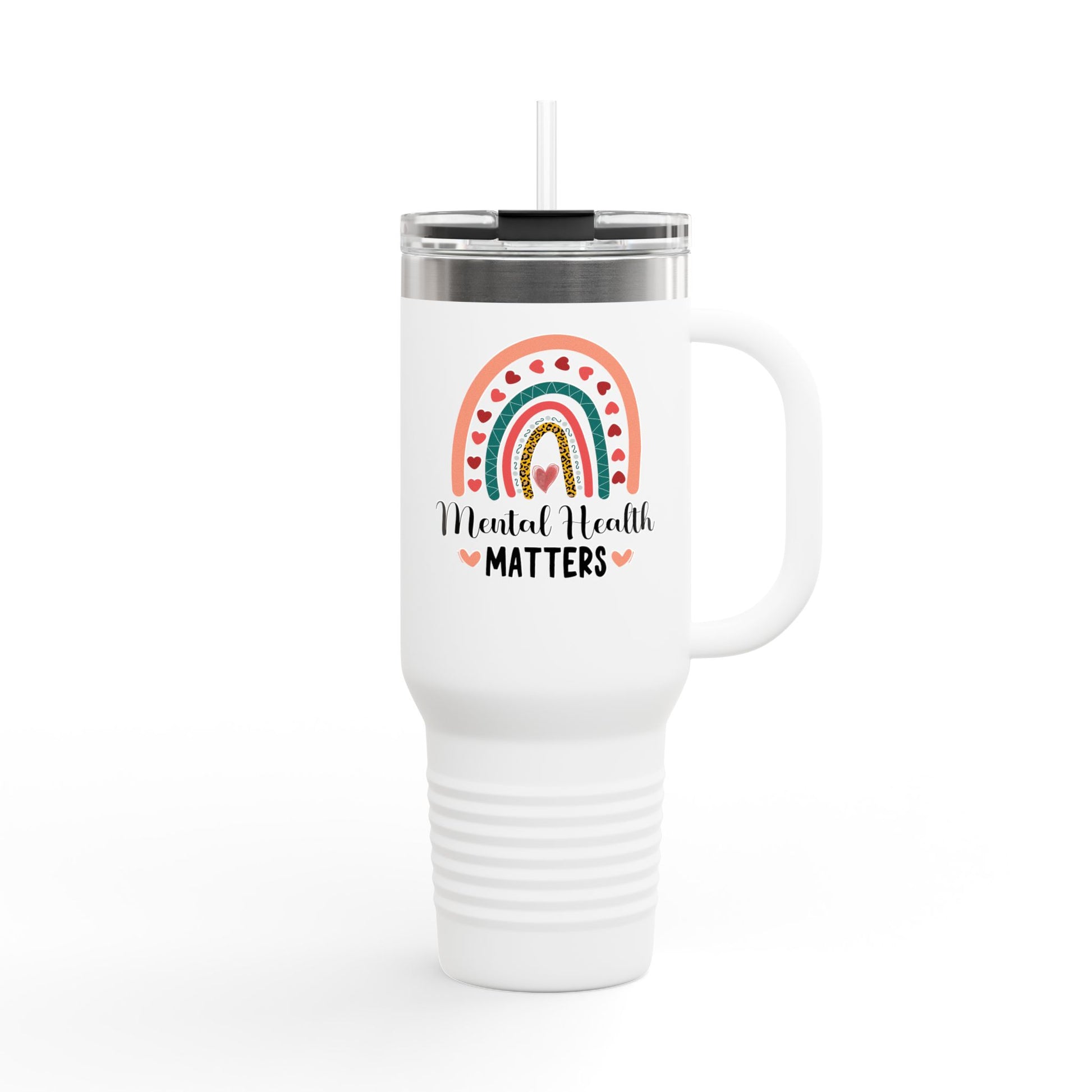 Insulated Travel Mug with Rainbow Design, Mental Health Matters - Reusable Cup for Coffee, Tea, Gifts for Her, Wellness Products